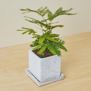 やわらかい細かい葉が優しい印象のエバーフレッシュの中でも小さなサイズですので、テーブルの上や棚の上など飾る場所を選びません。エバーフレッシュは合歓(ねむ)の木の仲間ですので、昼は葉を広げ、夜になると閉じる姿は寝ている様です。昼と夜の顔が違うのも魅力的です。